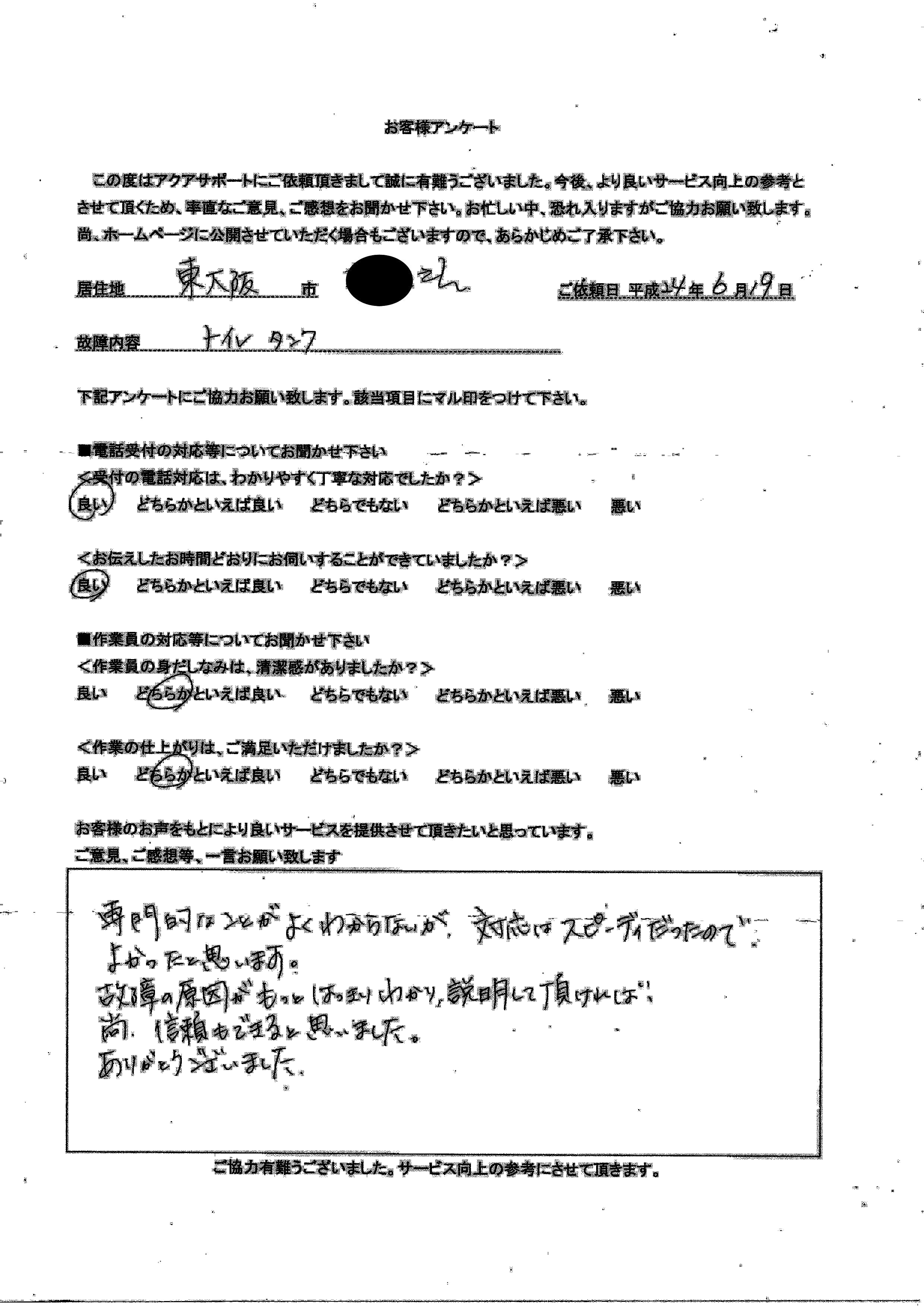 故障の原因がもっとはっきりわかり、説明して頂ければ尚信頼できると思いました。