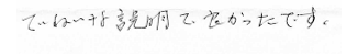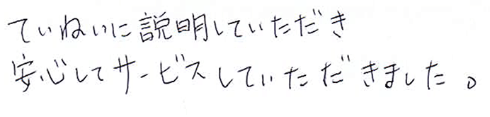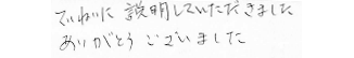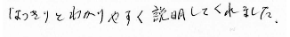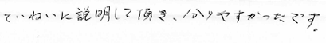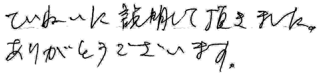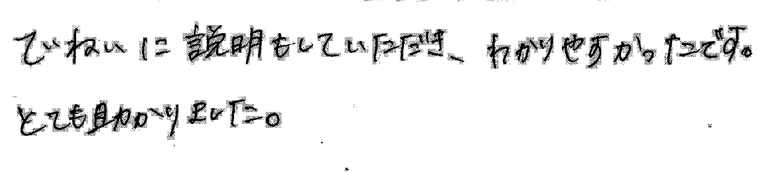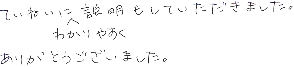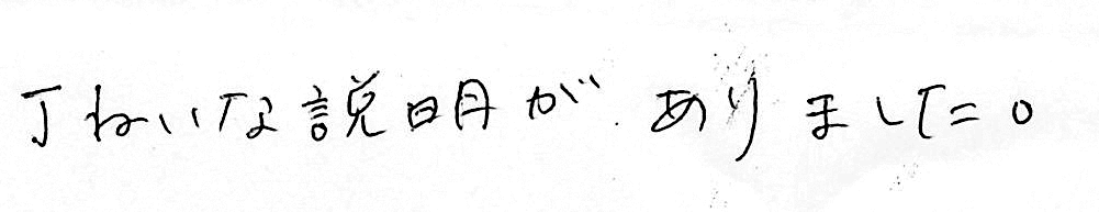 よくして頂き、本当にありがとうございました。説明が大変ていねいでした。