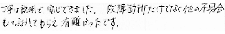 他のサービス業者にも見積もりを出して貰っていたのですが、御社が説明・対応共に一番感じが良かったのでお願いさせて頂きました。ありがとうございました。