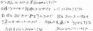 作業工程等詳しく丁寧に説明して頂きました。スピーディに対応して頂けたのも大変ありがたく思いました。ありがとうございました。