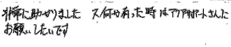 また何かあった時はアクアサポートさんにお願いしたいです。