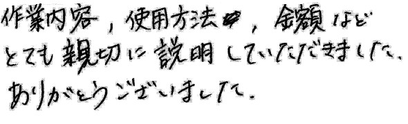 作業内容、使用方法、金額などとても親切に説明して頂きました。