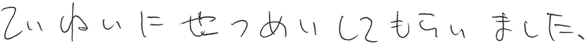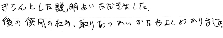 きちんとした説明をいただきました。後の使用の仕方、取りあつかいかたもよくわかりました。