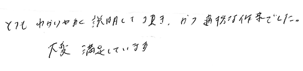 とてもわかりやすく説明して頂き、かつ的確な作業でした。大変満足しています。