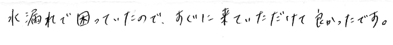 水漏れで困っていたので、すぐに来ていただけて良かったです。