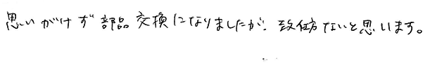 思いがけず部品交換になりましたが、致し方ないと思います。