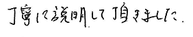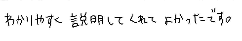 丁寧にわかりやすく説明もしていただきました。ありがとうございました。