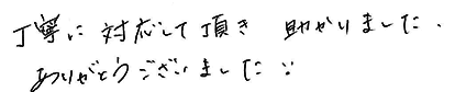 丁寧に対応して頂き助かりました。ありがとうございました。