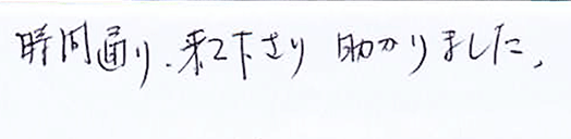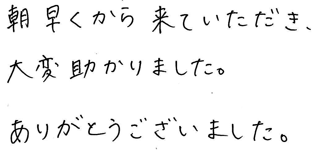 朝早くからきていただき、大変助かりました。ありがとうございました。