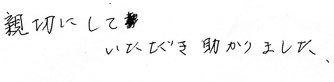 ていねいに対応して頂きたすかりました。ありがとうございました。