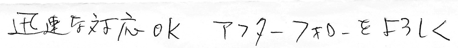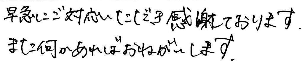 早急にご対応いただき感謝しております。また何かあればお願いします。