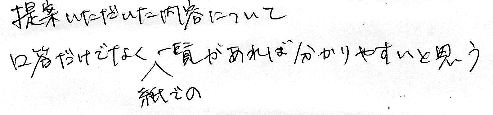 時間通りに来て頂いて分かりやすい説明でした。ありがとうございました。