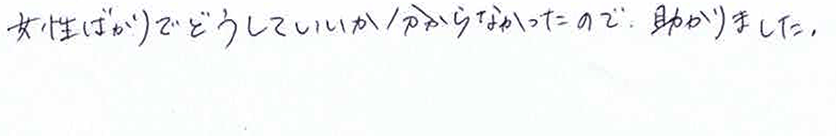 女性ばかりでどうしていいか分からなかったので、助かりました。